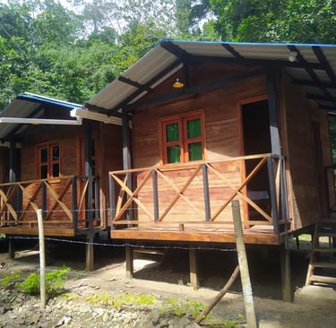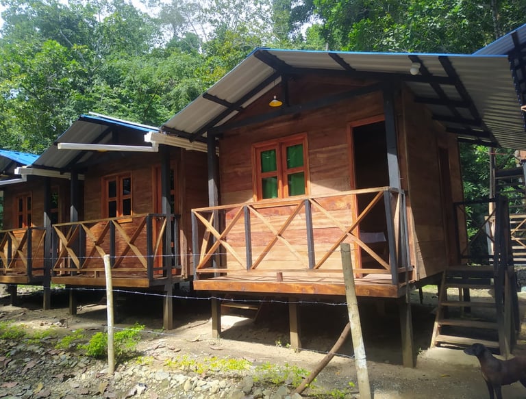 Cabañas cerca del río, senderos naturales, cerca a la playa y entornos soleados.